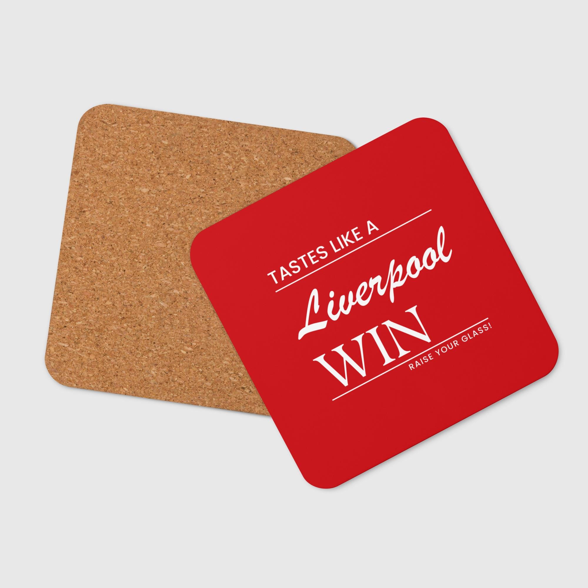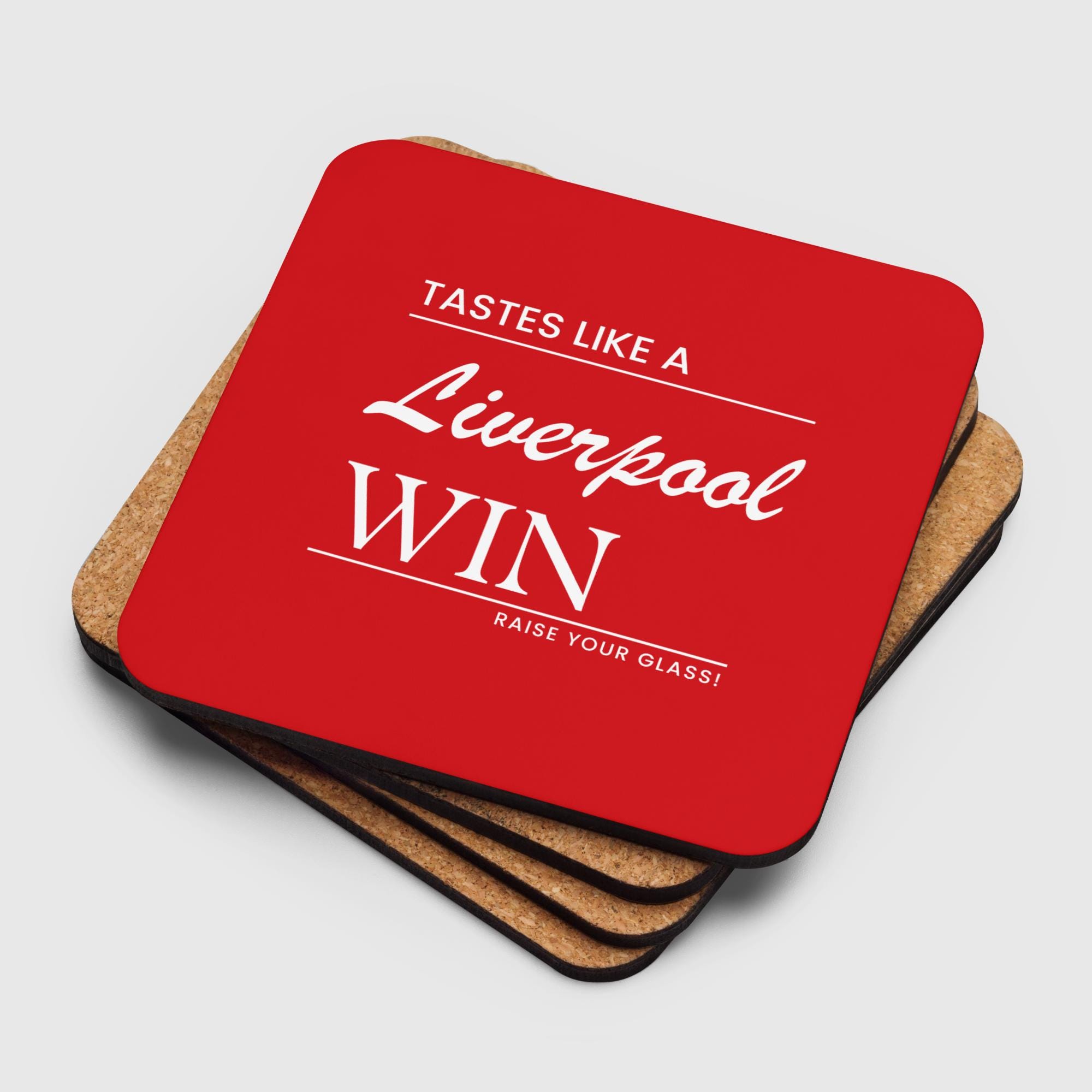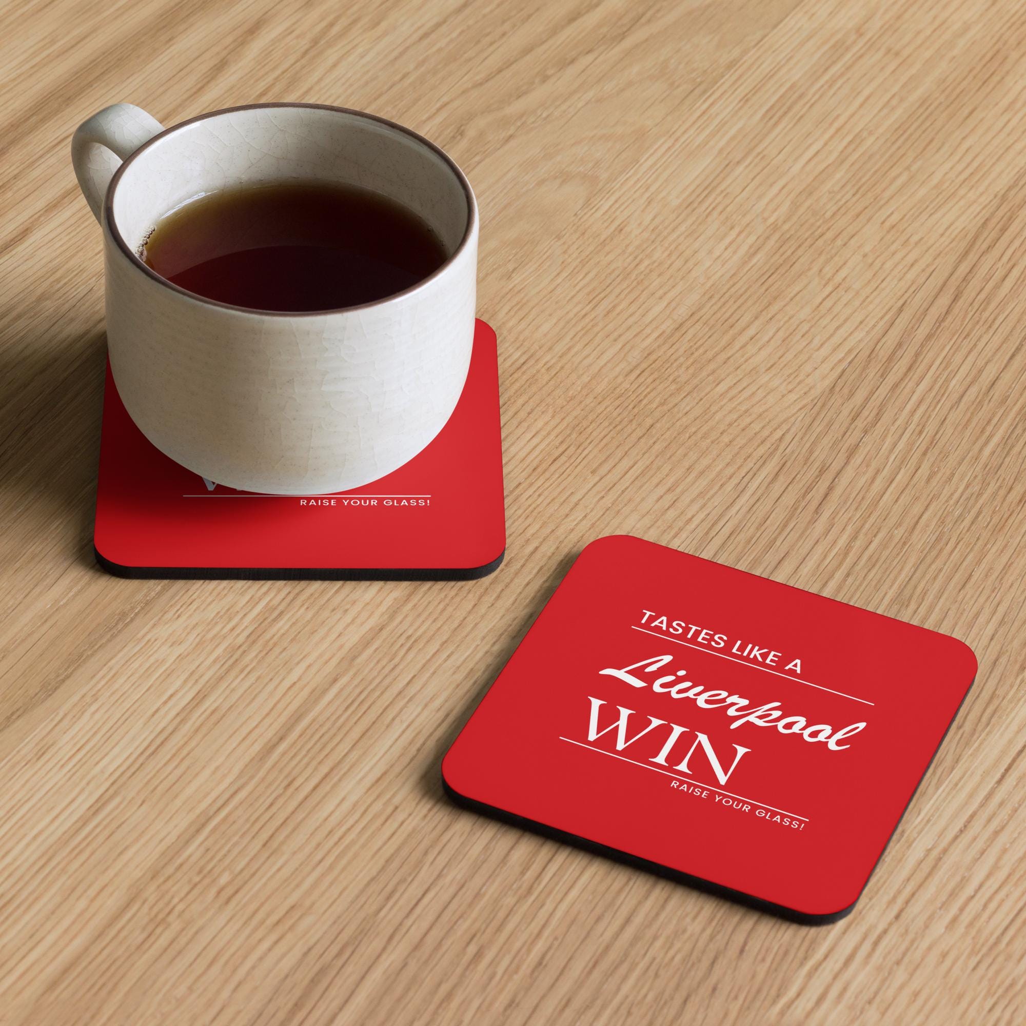 ⭐ Creative cork-back coaster in Liverpool FC, Reds FanArta Deco Merch 'tastes like a win' Collection Style ⭐