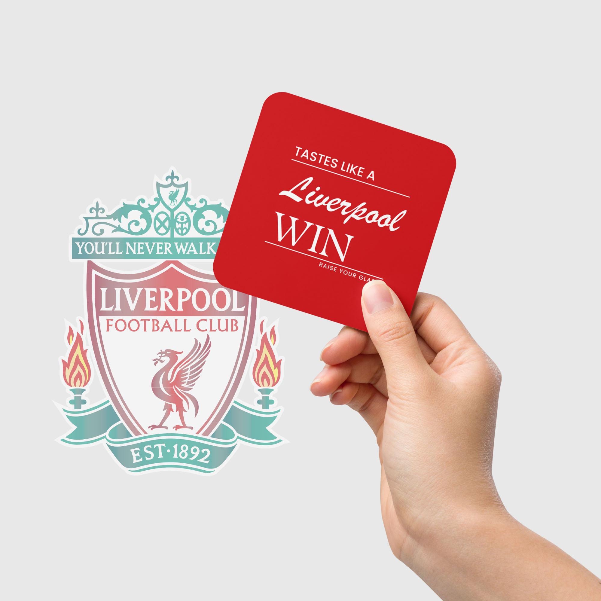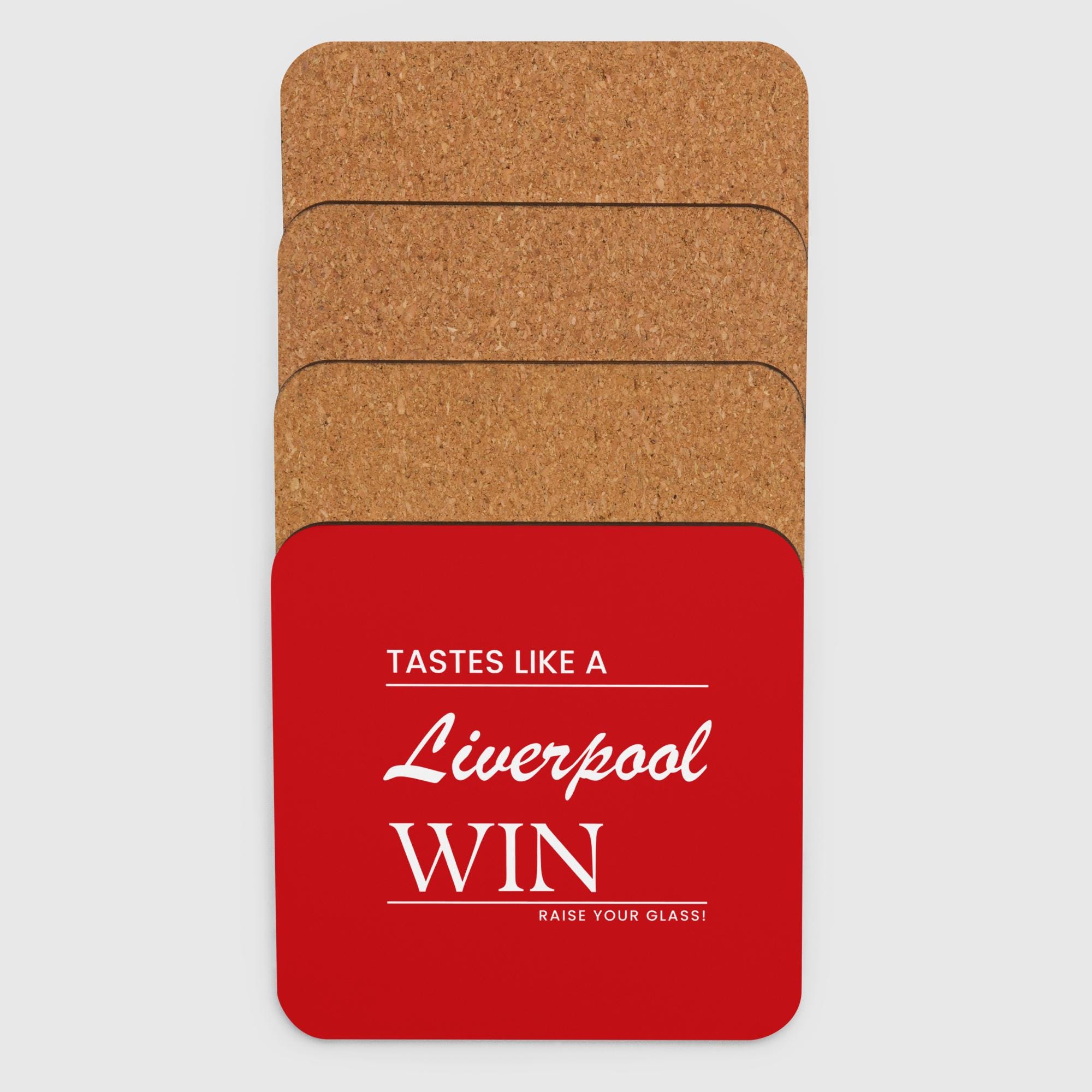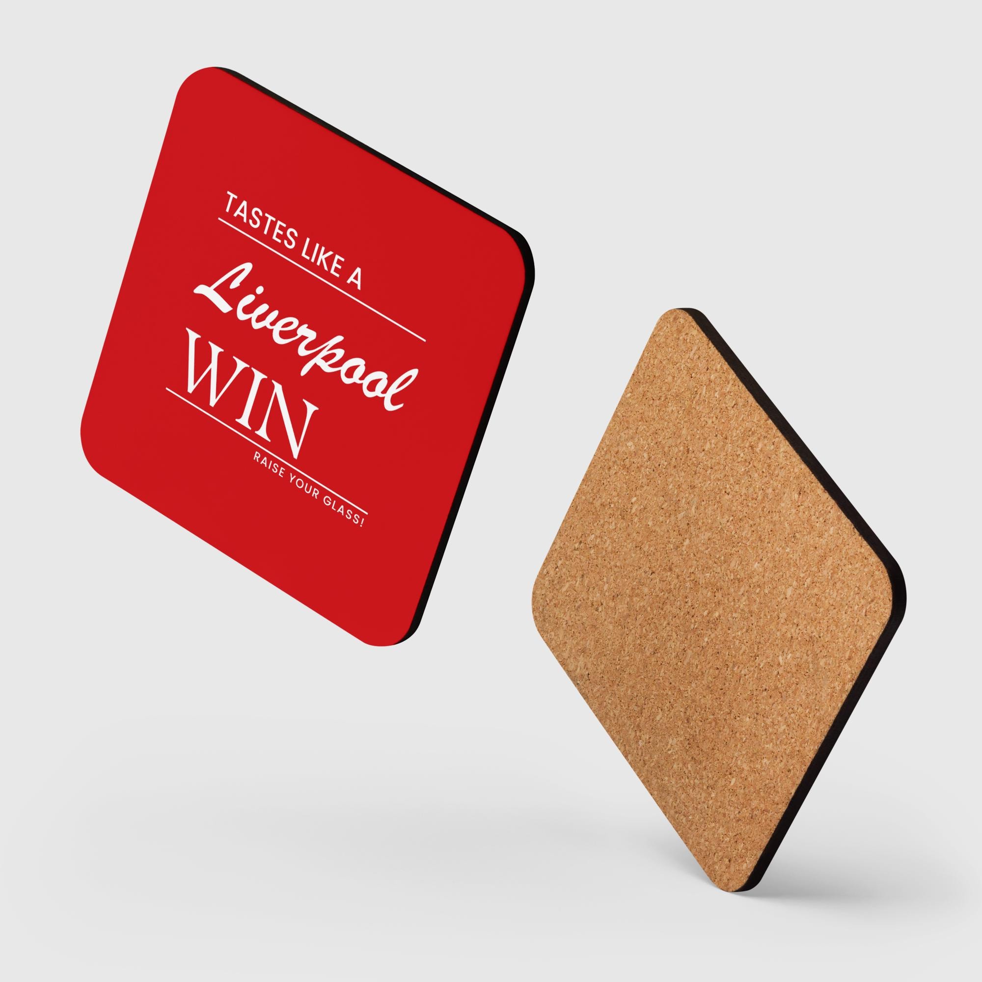 ⭐ Creative cork-back coaster in Liverpool FC, Reds FanArta Deco Merch 'tastes like a win' Collection Style ⭐